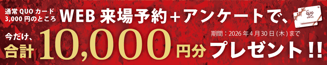 今だけ、来場予約+アンケートでQUO カード合計10,000円分プレゼント中!