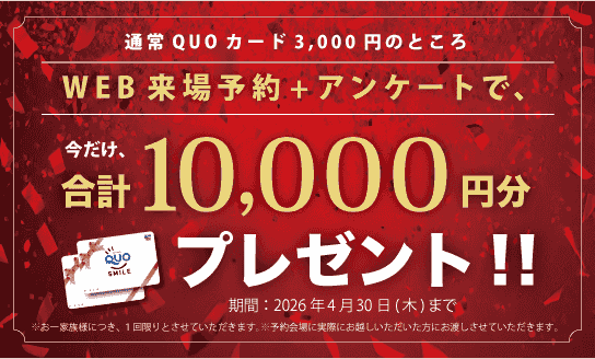今だけ、来場予約+アンケートでQUO カード合計10,000円分プレゼント中!