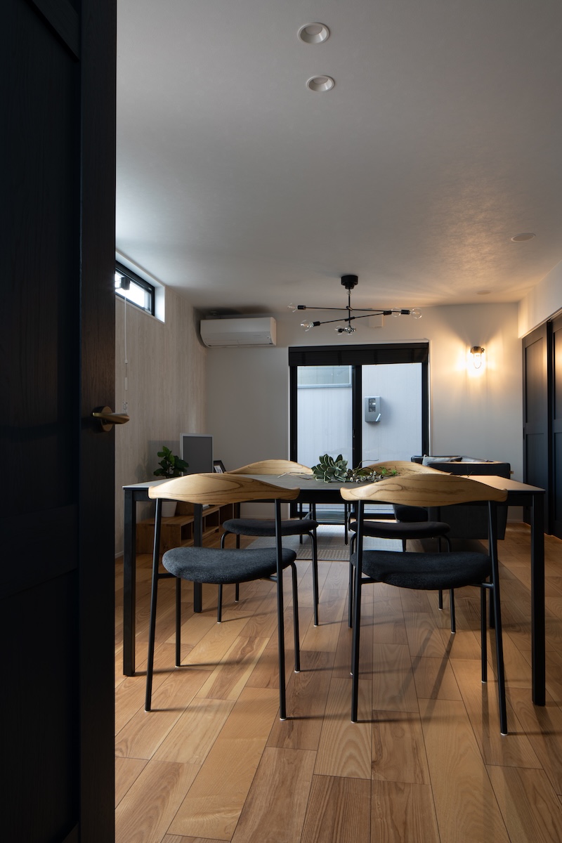 内装・外装デザインにはブラックとネイビー、ナチュラルウッドを組み合わせ、ブルックリンスタイルの世界観を演出。住み良さとデザイン性を両立した住まいになりました。